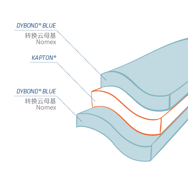 dyterm®k blue是多层柔性材料系列,得益于kapton®(或普通聚酰亚胺膜)和dybond®blue的高温性能,使此系列产品可在高达200°c的情况下使用。dybond®blue由coveme公司生产,通过专利(dupont™和coveme)工艺,转化含云母的nomex®产品,除了具有含云母nomex®产品的局部放电电阻外,还赋予产品极大的机械稳定性和紧凑性。